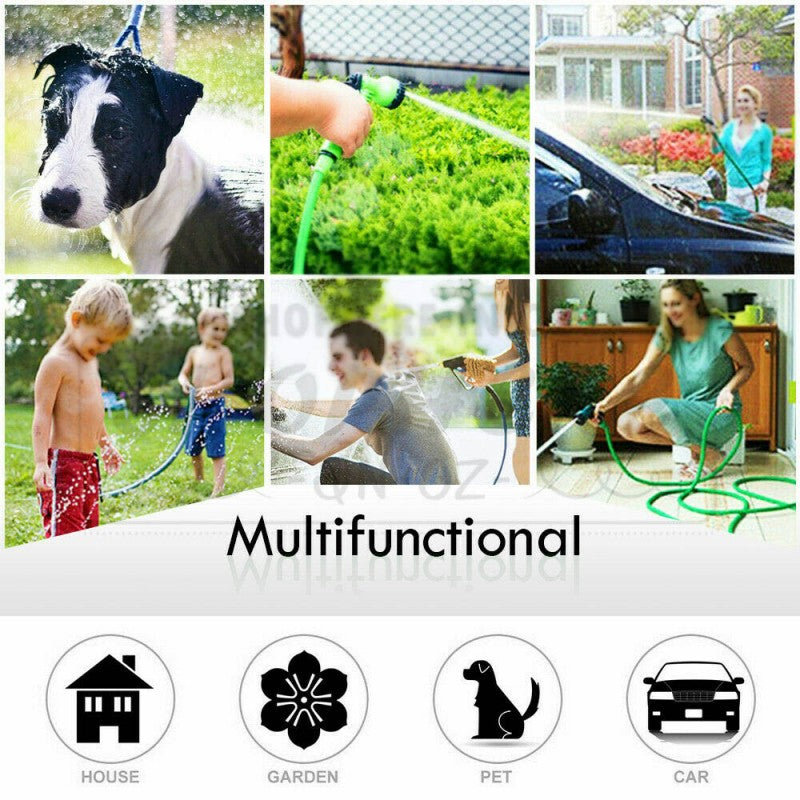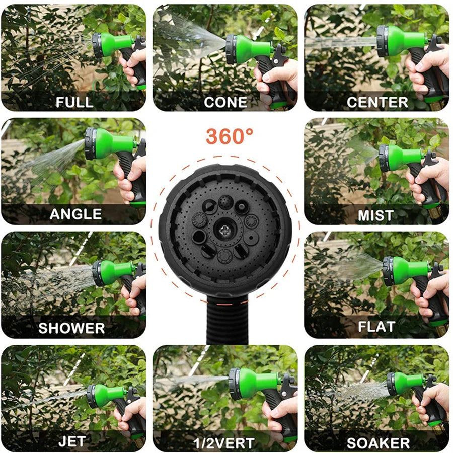فوهة خرطوم الحديقة القابلة للتمدد توفر 8 وظائف لرش الماء، ومقبضها المطاطي سهل الإمساك ومضاد للانزلاق. خرطوم الحديقة الممتد له استخدامات متعددة، مثل تنظيف السيارات، والبستنة، وتنظيف الحدائق، واستحمام الحيوانات الأليفة، إلخ.